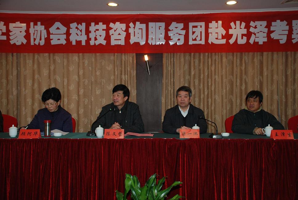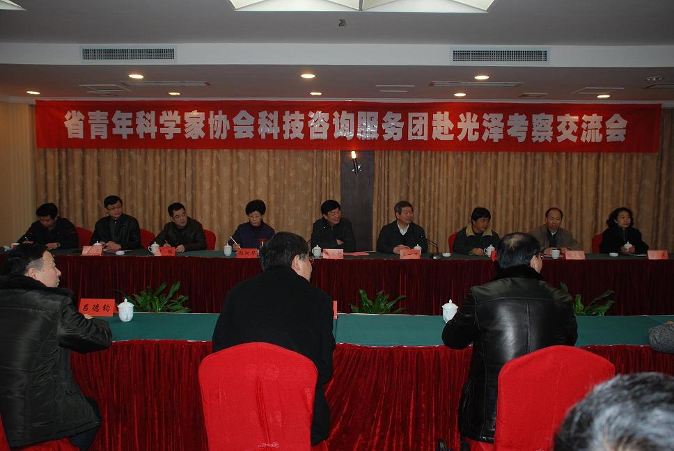 ——省青年科学家协会专家到光泽献策助力 3月10日上午,省青年科学家协会科技咨询服务团赴光泽考察交流会在假日酒店二楼会议室召开。省青年科学家协会有关领导、专家,县委书记李宝银等县四套班子领导出席会议。 省青年科学家协会常务副理事长、咨询服务团团长、福建工程学院副院长陈文哲首先发言,他表示此次考察初步了解了光泽的经济社会发展情况,对城市规划、特色产业、科技运用等方面有了大致印象,这将为日后实现双方的科技咨询、服务的顺利对接打下良好的基础。光泽地处闽江源头、武夷腹地,生态环境良好、资源丰富,具备生态农业、特色产业发展的先天优势,希望光泽能把握“科学技术第一生产力”,促进地方经济科学发展、持续发展。县委常委、政法委书记肖立刚随后介绍了光泽县的基本概况,明确未来几年光泽将大力发展新的生产力,加强与科研机构、高校团体的科技对接,建立并完善“一只鸡、一株竹、一片叶、一把草、一棵树、一尾鱼”的“六个一”特色产业群。 会上,科技咨询服务团的有关专家还就光泽县城市规划、医疗设施和人才队伍建设、鸡内金及厚朴等生物医药产业化、鸡粪培育食用菌等提出了建设性的意见和建议。 县委书记李宝银对专家们积极献计献策表示感谢。希望全县上下认真学习省委、省政府出台的一系列扶贫开发政策和陈桦副省长调研光泽扶贫开发工作的讲话精神,大力弘扬“爱国爱乡、海纳百川、乐善好施、敢拼会赢”的福建精神,积极组织学习“勇于创新、敢于拼搏、善于纳贤、乐于奉献”的圣农精神,理清发展思路,明确对接方向,主动对接“观念、技术、项目”上的帮扶,加快光泽崛起,努力实现光泽经济社会又好又快发展。
